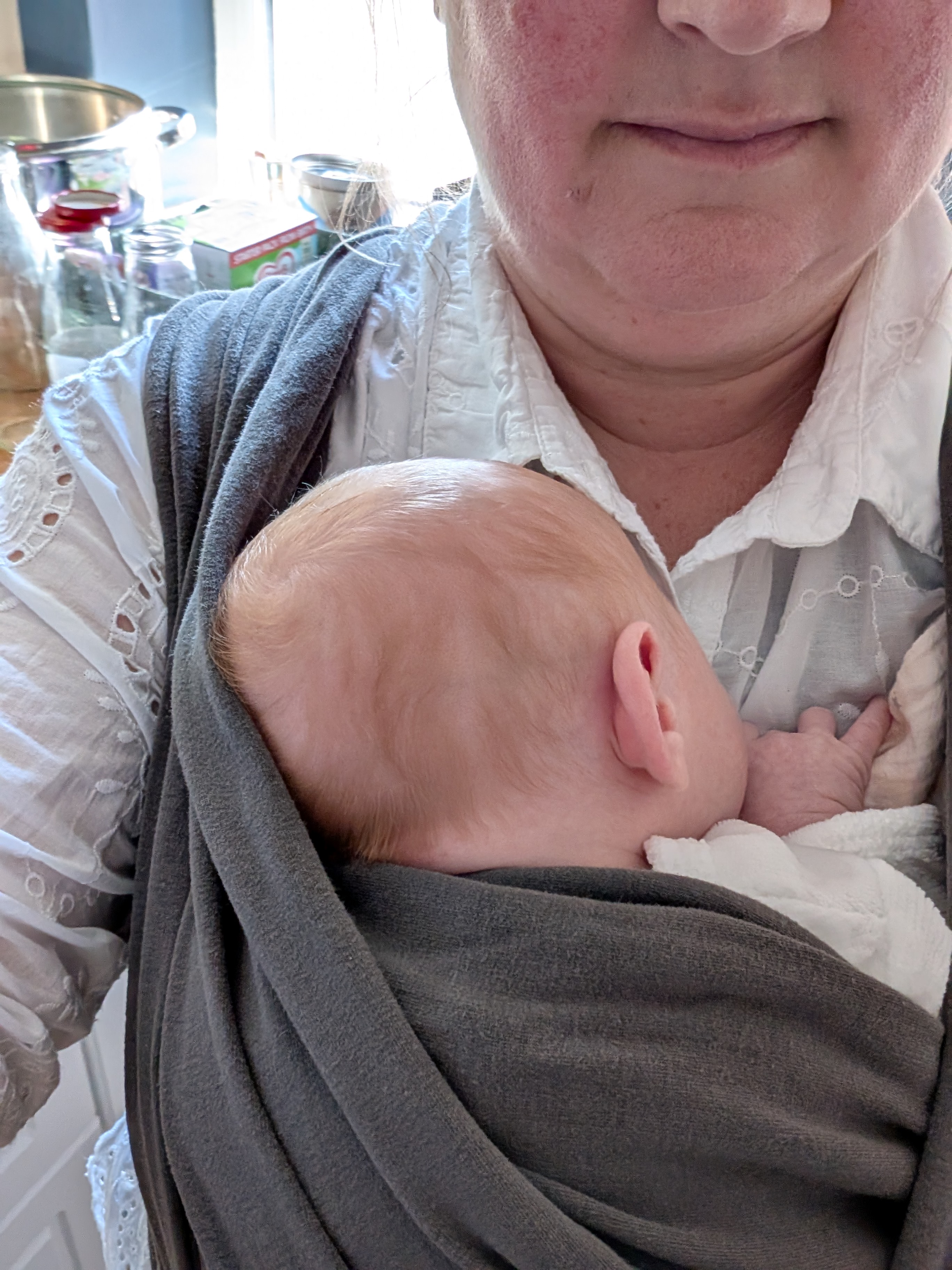 This could be a rebozo, babywearing scarf, towel, stretchy wrap, woven wrap, buckle carrier. Whichever way of looking after a baby who won’t be put down and also having hands free is most familiar and comfortable for each doula.